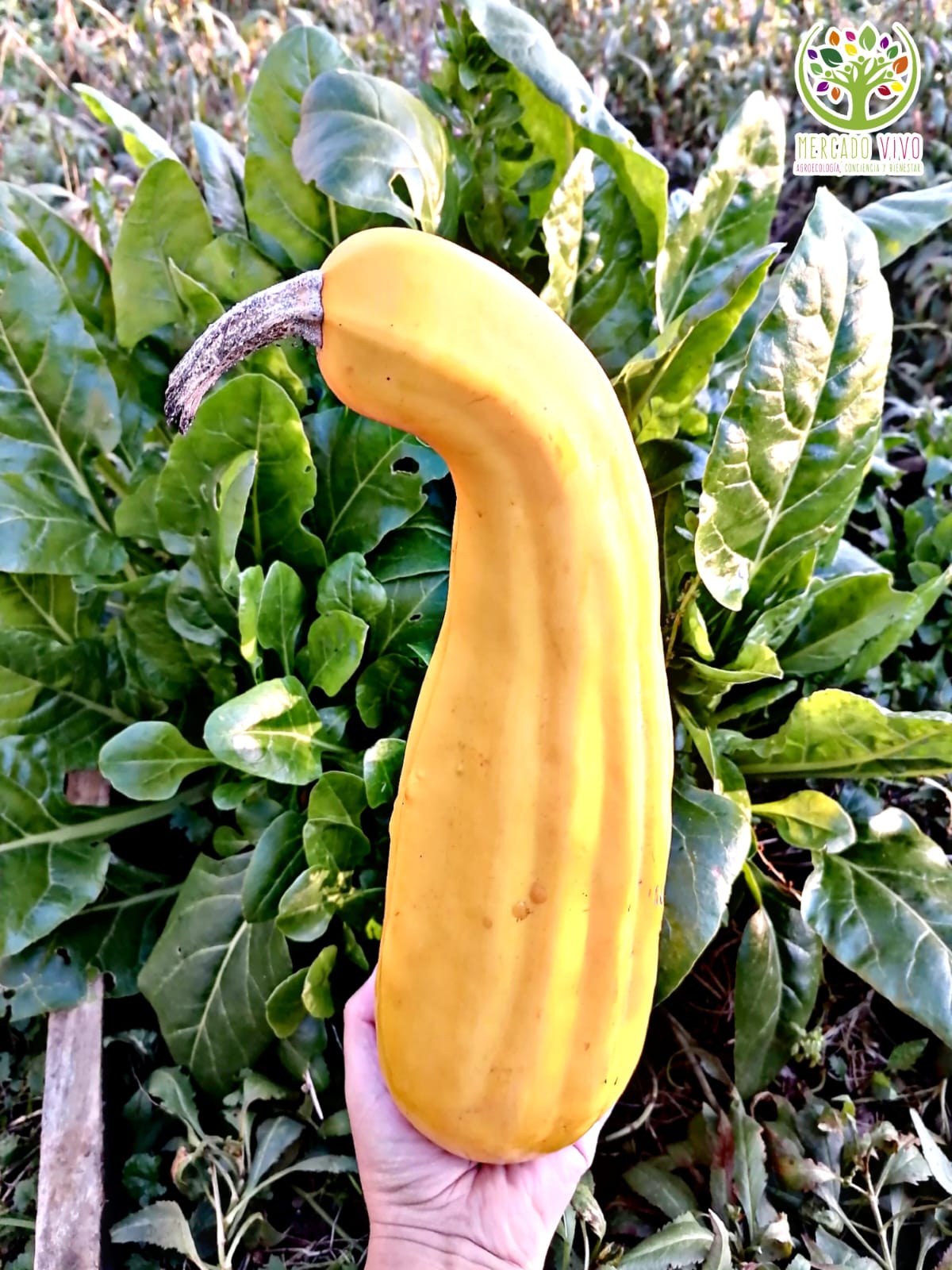 Es de color amarillo intenso, la mayoría de los frutos tienen cuello curvo, similar a un ave, por lo que para identificarla de las demás variedades decorativas la hemos llamado «Calabaza amarillo patito».